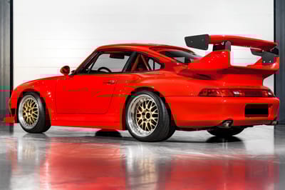 When Porsche capped air-cooled 911 production with these 993-series Turbos, they created a vehicle that would go down in history as one of the most driver-focused sports cars ever. This particular example, finished in Guards Red and sporting true GT2 Evo updates, is truly special.