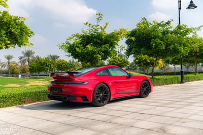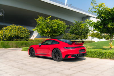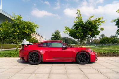 Splashes of Agate Grey, a 911 T factory spec, set off the stunning Guards Red finish, while Porsche’s Exclusive Manufaktur division was enlisted to push this particular Carrera T north of $130,000 when new. And with the seller's addition of over 130k AED (~$35,000) in upgrades it is the ultimate 911 for those who are serious about the drive.