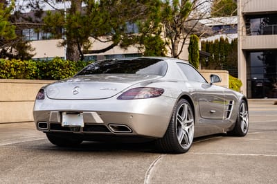 Fire up that naturally aspirated 6.2L V8, however, and you’ll find out that the SLS AMG is a true wolf in sheep’s clothing. Today’s 2012 coupe is a prime example of this rare beast with low mileage, a shimmering Alubeam Silver finish, and all the hallmarks of meticulous stewardship.