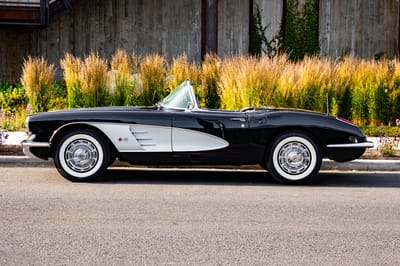 This 1960 Chevy Corvette has it all. The coveted 270-hp V8 with a 4-speed manual, the factory removable hardtop, plus options like the accessory heater and Wonder Bar radio. A true four-season classic Corvette, it stuns in that triple black finish with those gorgeous silver coves.