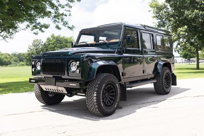 SBX Cars is proud to offer for sale this custom 1996 Land Rover Defender 110 five-door 4WD sport-utility vehicle that was a recipient of a recent complete restoration and shows 3,753 miles. Finished in British Racing Green over a saddle Nappa leather interior, it is offered with a clear title.