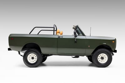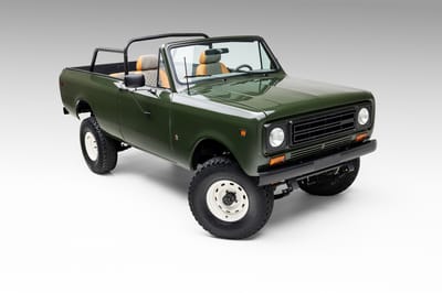This restomod Scout II Traveler blends vintage design and modern engineering, thanks to a GM-supplied 5.3-liter Vortec V8 under the hood. Its performance credentials have been enhanced even further via a 4L60E four-speed automatic transmission, a Dana 20 dual-range transfer case, power disc brakes, and a custom stainless-steel exhaust system. Best of all, this Traveler’s hardtop can be removed to put adventure-seekers even closer to the great outdoors.