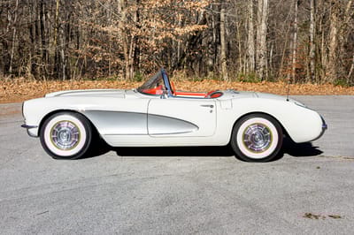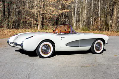 SBX Cars is proud to offer for sale this 1956 Chevrolet Corvette, showing just 19,389 mi (31,203 km) on the odometer at the time of cataloging, though true mileage is unknown. Finished in Polo White with Silver coves over a red vinyl interior, this C1 presents as a remarkably authentic early-production Corvette.
