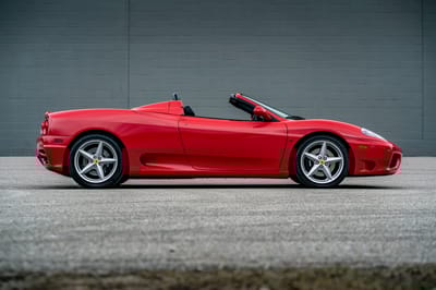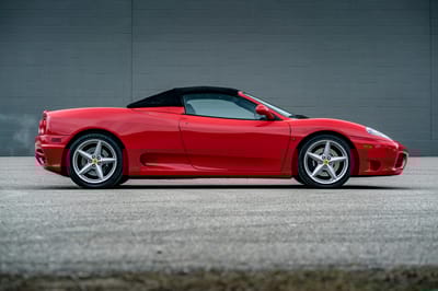 SBX Cars is proud to offer for sale this 2001 Ferrari 360 Spider showing just 7,515 miles on the odometer at the time of this cataloging. Finished in Rosso Corsa with a black power-retractable top over a Nero leather interior, it is offered by Garage Kept Motors in Michigan with battery tender, a tool kit, manuals, two keys, service records, a clean CARFAX report, and a clear title.