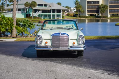 SBX Cars is proud to offer for sale this 1966 Mercedes-Benz 250SE Cabriolet showing 9,822 miles on the odometer at the time of this cataloging. Finished in light green over a Parchment leather interior, this W111 Cabriolet is offered with service records, owner’s booklets, historic registration cards, and a clear title.