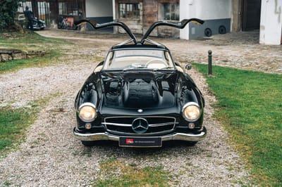 When it was introduced in 1954, the 300 SL featured the now iconic gullwing doors - a door design picked primarily due to the SL's innovative design and engineering considerations. The car's chassis bracing was quite high due to its tubular frame, which made conventional doors impractical. Gullwing doors allowed for easier access to the cockpit while also providing structural support to the chassis, enhancing rigidity and overall performance. That creative engineering solution to the problem became a defining signature element, forever linked to what is arguably the first modern supercar.