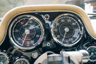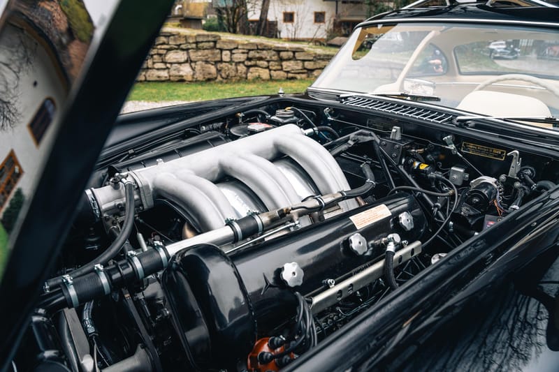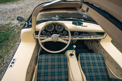 Upon receipt of this restored example, HK Engineering refinished the body in the delivery color, paint code DB 40 in black, and then fitted green checkered seat cushions with a fully reupholstered interior. In all, improvements and upgrades totaling €250.000 in parts and labor were performed, resulting in this incredible example available with us for auction.