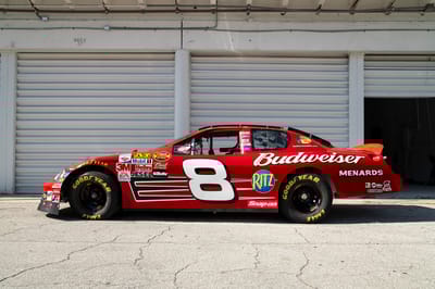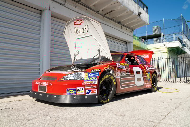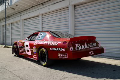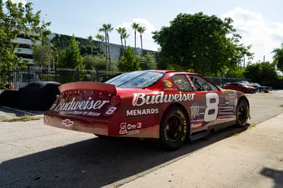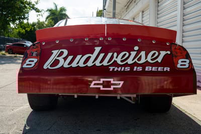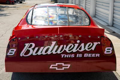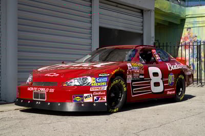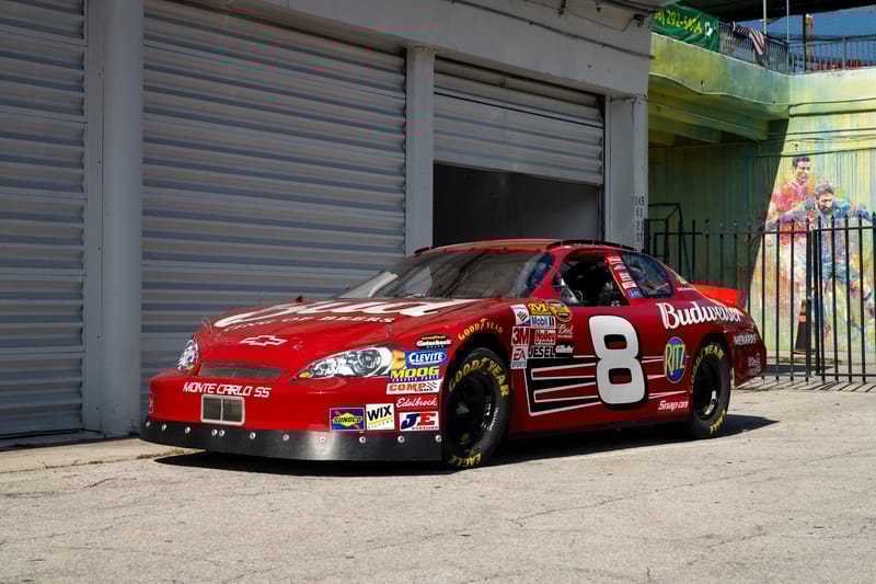 This is a 2007 NASCAR Chevrolet Monte Carlo, built by DEI Inc., the acronym for Dale Earnhardt International, the motorsports enterprise behind one of the most famous dynasties in American motorsports. Chassis DEI 040 is finished in red with Budweiser livery, and was raced by Dale Earnhardt Junior in the 2007 season. It participated in the 2007 Pepsi 400 on Saturday, July 7th at Daytona International Speedway in Daytona Beach, Florida, where it wound up in 36th place in running condition.