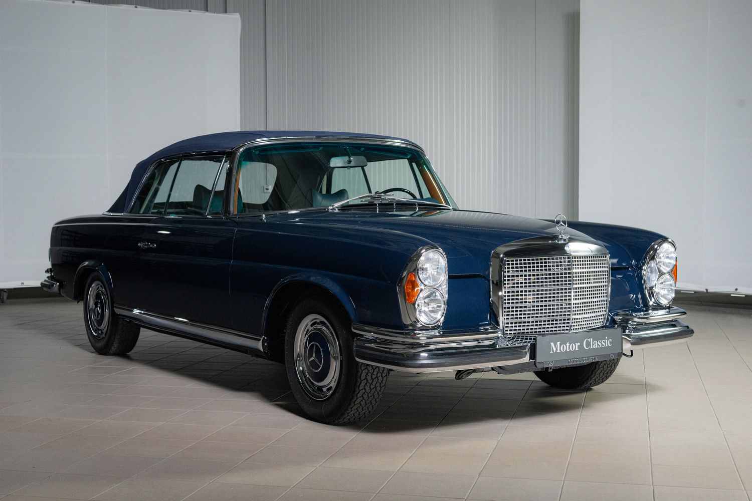 This is a 1970 Mercedes-Benz 280SE 3.5 Cabriolet. It is powered by a 3.5 liter V8 engine, running power to the rear wheels through a four-speed automatic transmission. It is finished in Dark Blue (paint code UT 904) over a blue leather interior, with a dark blue fabric convertible top. This 280SE underwent a full cosmetic and mechanical restoration in 2023, with only test mileage accrued since the work was completed. It also comes with full documentation and photos of the work performed.
