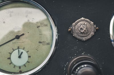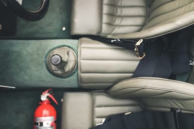 The car is now registered as a vehicle of special interest and once again proudly displays its original LOY 501 registration number. The aluminum coachwork is finished in British Racing Green (but, of course). The paint, while updated, retains the original white “meatball” number circles, which show some cracks and patina. Sir Stirling Moss’s signature can be found on the trunk lid.