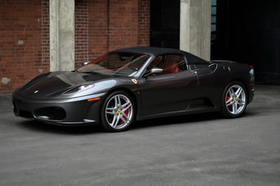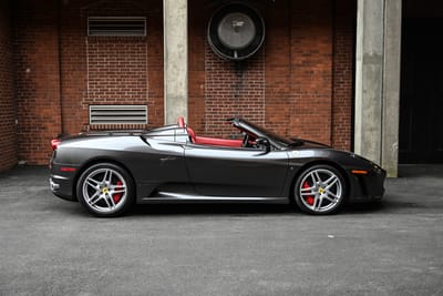 This stunning 2008 Ferrari F430 F1 Spider, finished in Grigio Silverstone over a Rosso leather interior and showing 12,113 miles at the time of cataloging, is offered for sale on SBX Cars.