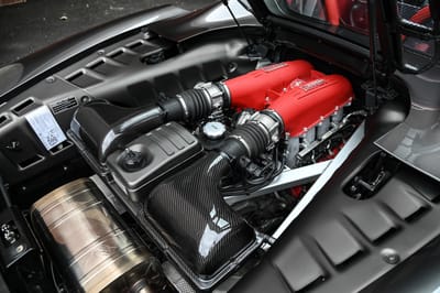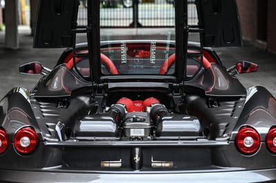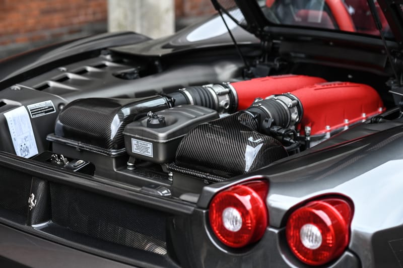 This F430 F1 Spider is powered by a 4.3-liter V8 and is paired with a six-speed F1 semi-automatic transmission. Full carbon-fiber airboxes help produce 490 bhp at 8,500 rpm and 465 Nm (343 lb-ft) of torque. It delivers 0-60 mph (0-97 km/h) in 3.9 seconds with a top speed of 193 mph (311 km/h).