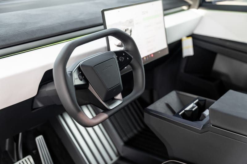 Other notable features of this vehicle include variable-ratio four-wheel steering, adaptive air suspension, eight anchor points for accessories, 20-inch Cyber wheels, automatic LED lighting, front and rear touchscreens, eight exterior cameras, and a full-length roof panel that is constructed with impact-resistant acoustic glass.