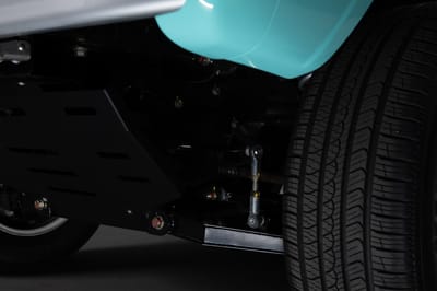 Lastly, but certainly not least, this retro-looking SUV sits on a set of 18-inch steel wheels painted with a durable powder coat finish for longevity and sitting in front of a Brembo six-piston (front) and four-piston (rear) braking system.