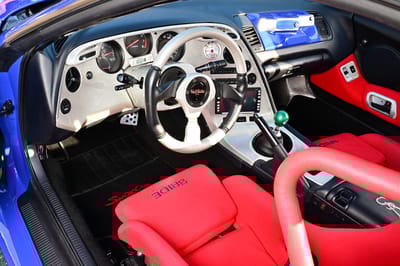 VeilSide also got the nod on the interior too, with a comboat carbon-fiber steering wheel matched up to a Top Secret quick-release system, shift knob, racing pedals, Blitz boost gauge, EGT warning gauge, fuel pressure and gauge.