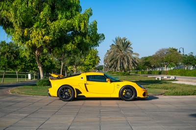 This 2021 Exige Sport 410 20th Anniversary Edition has remained with its original owner in Dubai, UAE since new and now shows just 10,276 km (6,385 mi).