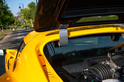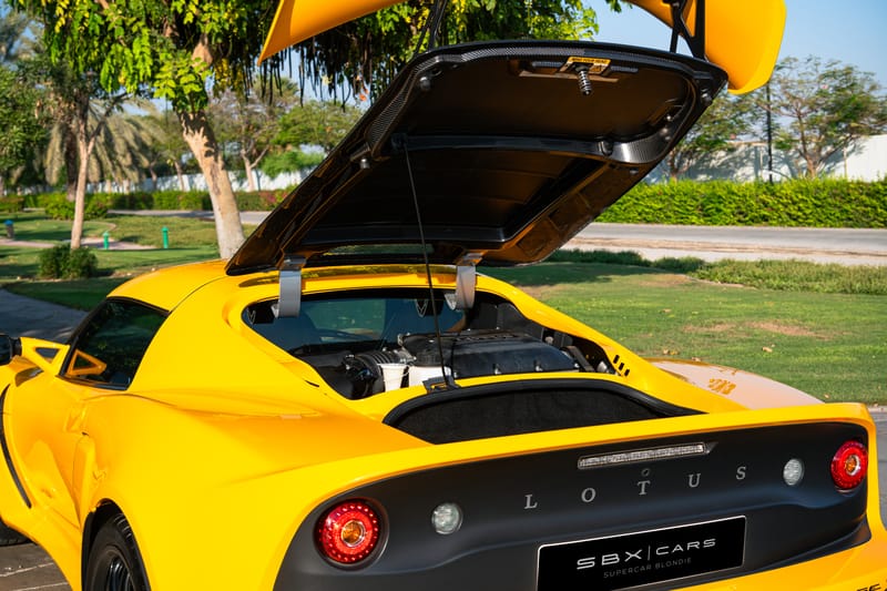 This 2021 Lotus Exige Sport 410 20th Anniversary Edition was serviced by Adamas Motors in Dubai on August 29, 2024. Work included replacing the gear oil and brake fluid, installing new oil, pollen, and air filters, replacing the oil sump baffles, and installing new Michelin Pilot Sport Cup 2 rear tires.