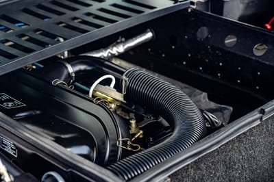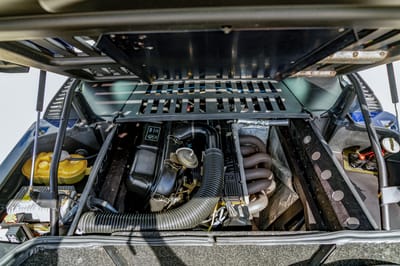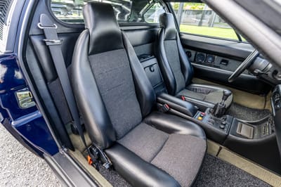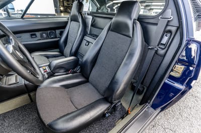 This 1981 M1 was delivered in orange and repainted in its current blue finish. The original color can be seen coming through in small areas including on the rocker panel near the driver-side rear wheel. Minor driver’s seat bolster wear is also documented in the gallery along with underbody condition.
