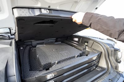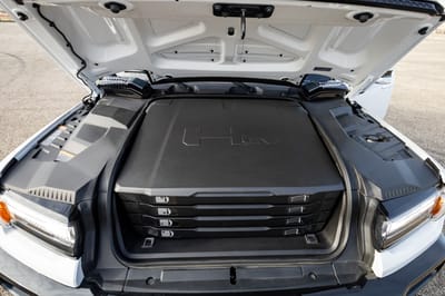 Activate Watts to Freedom and the Hummer can rocket to 60 mph in 3 seconds flat courtesy of 1,000 horsepower and, per GMC, 11,500 lb-ft of combined axle torque. In CrabWalk mode, the rear wheels can turn in phase with the fronts up to 10° for wild diagonal driving maneuvers.