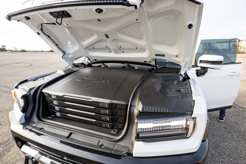 Need to clear serious obstacles? Engage Extract mode and the big Hummer can jack its air suspension up to a staggering 15.9” of ground clearance. The roof panels come off, it has Super Cruise, there’s an audio system embedded in the tailgate, and the 35-inch mud-terrain tires are ready for serious off-roading. In short, this 2022 Hummer EV Edition 1 pickup truck is one of the most incredible vehicles ever built.