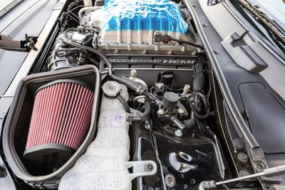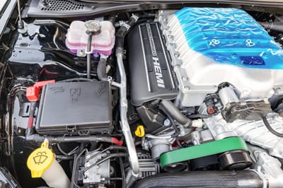 “The motor snarls under the long hood, which airs out through nostril-like intakes, making the Mopar hood pins quake.” - Autoblog