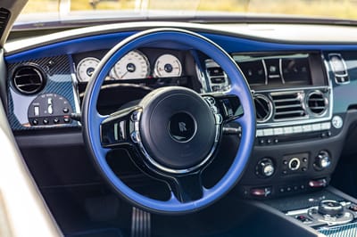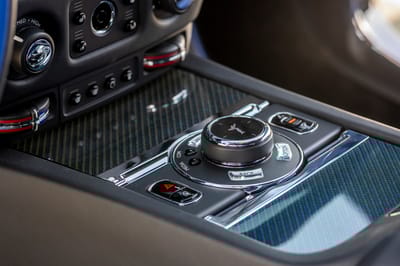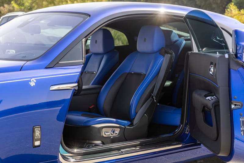 Exposed carbon fiber wheels, hand-painted Coachlines with the Sportive emblem, a technical fiber interior fascia entwined with Salamanca Blue fibers, engraved audio system frets, and the list goes on. Suffice it to say, in the rarefied world of Rolls-Royce motor cars, this 2020 Wraith stands out as a singular expression of luxury.
