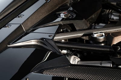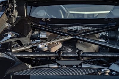Producing 780 CV (769 hp) with a hair-raising 8,700-rpm redline, the Ultimae can go from 0-62 mph in just 2.7 seconds and far beyond 200 mph at the top end. All courtesy of the stunning power plant with its gold-finished intakes mounted in a shimmering carbon fiber bay - designed for ogling under a louvered glass cover. True automotive art.
