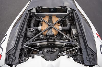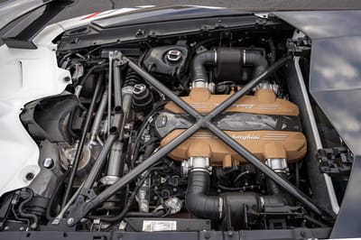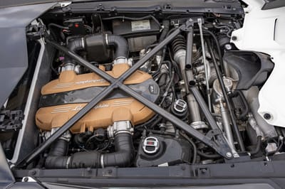 - Longitudinal mid-mounted 6.5-liter multi-port injected V12 with 8,700-rpm redline