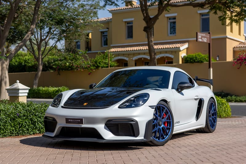SBX Cars is proud to offer for sale this 2023 Porsche Cayman GT4 RS Weissach showing just 4,590 km (2,852 mi) on the odometer at the time of cataloging. Finished in Carrara White Metallic over a Black Race-tex cabin with Deep Sea Blue accents, this ultimate track-focused Porsche is something special.