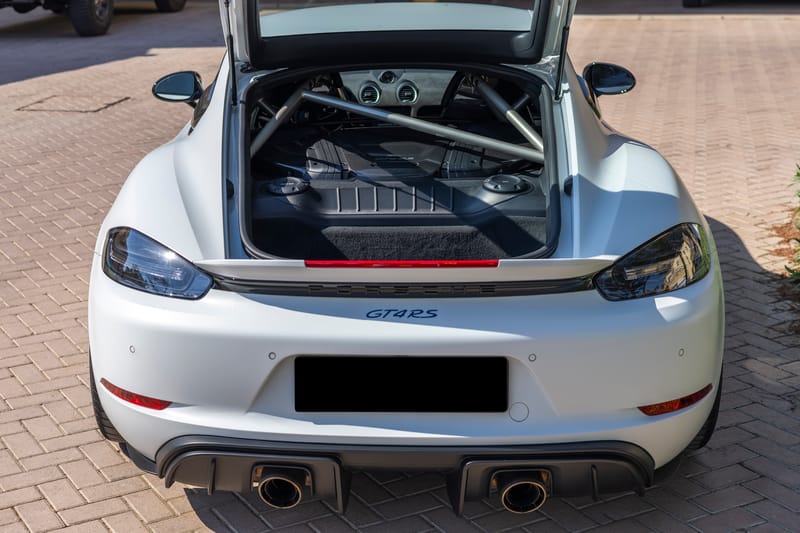 A minor service has been recently completed, including an oil change to ensure optimal engine performance. This 2023 Porsche 718 Cayman GT4 RS is a first-owner vehicle, meticulously maintained and presented in exceptional condition.