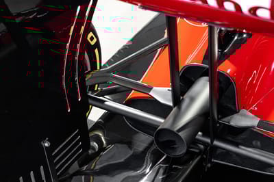 This 2016 Ferrari SF16-H replica can be steered and rolled, but does not have an engine or drivetrain.