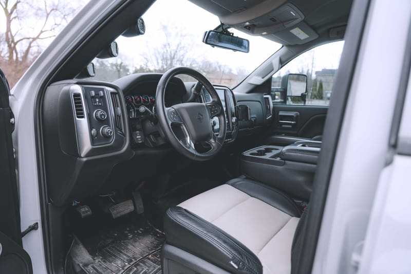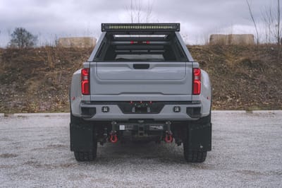 Setting out to completely redefine what it means to be “heavy duty,” the truck was initially manufactured as a chassis cab by Navistar International in August 2020. Select chassis elements, including a dually-style bed, were derived from the General Motors C4500 range of pickups. From there, the truck’s year-long custom build reportedly reached a $250,000-plus investment by the prior owner. Standout features from the long list of enhancements include a Kelderman air-ride suspension, dual TorkLift receiver hitches and Stazworks 20-inch wheels wrapped in massive 42-inch Goodyear G275 tires.