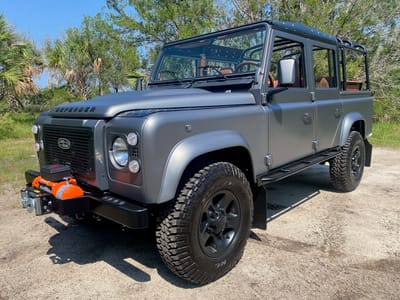SBX Cars is proud to offer for sale this fully restored 1997 Land Rover Defender 110 300 Tdi showing just 111 mi (179 km) on the odometer at the time of cataloging. Finished in Matte Stornoway Gray with a tan canvas top and matching leather cabin, this carefully recrafted Defender is a work of automotive art.