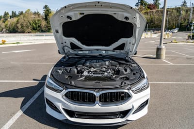 This 2023 BMW 850i xDrive was serviced by BMW Seattle in April 2024 at 658 miles. An oil change, four-corner alignment, and inspection were performed.