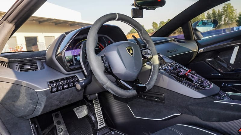 In Super Veloce Jota (SVJ) spec, the Aventador pays homage to the legendary Miura Jota, a Lamborghini that kicked off a long-running line of coveted V12-powered Italian wedges. Countach, Diablo, and Murciélago. Each one a testament to the engineering prowess in Sant'Agata Bolognese.