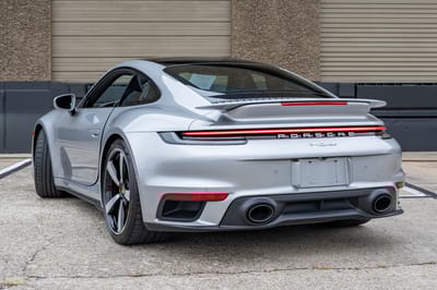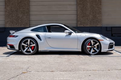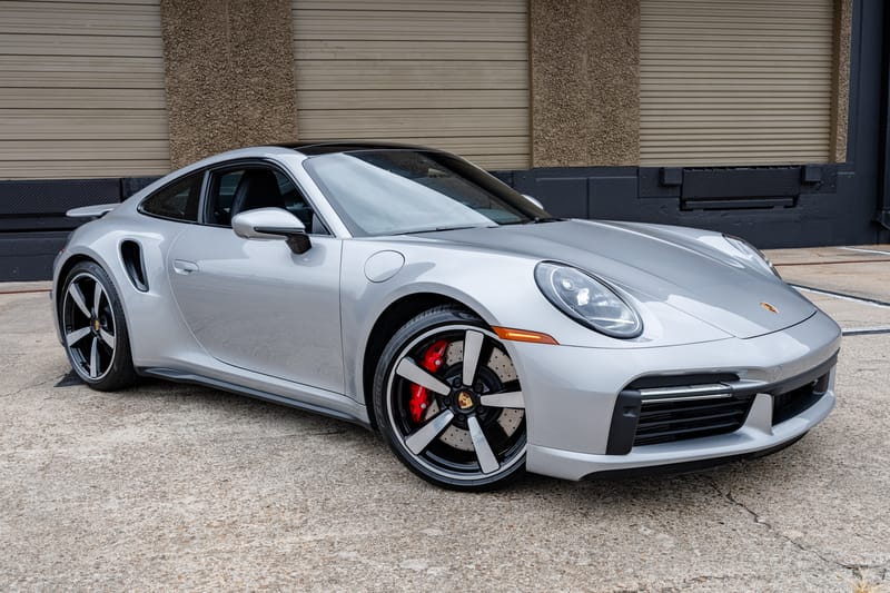 SBX Cars is proud to offer for sale this 2022 Porsche 911 Turbo Coupe AWD showing 5,265 miles at the time of this cataloging. The Canadian-market car is finished in GT Silver Metallic over a black leather interior and is being listed by Collector Motors in Houston, Texas.