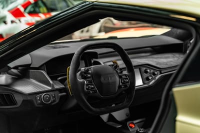 The Holman Moody Heritage Edition was built to commemorate Ford’s record-breaking 1966 1-2-3 finish sweep at the 24 Hours of LeMans. It was conceived by Ford’s race team as an ultra-limited-production supercar and made its first public debut at the 2022 New York International Auto Show. Paying tribute to the podium-placing GT40 Mk II race car in every regard, it comes equipped with contemporary touches like exposed carbon fiber, 20-inch wheels, Brembo brakes and active aerodynamics.