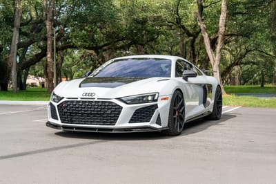 Likely to turn heads everywhere it goes with the subtle shade of Suzuka Gray complemented by a high level of carbon fiber upgrades, this 2020 Audi R8 is sure to shock its next owner with 1,300 wheel horsepower on tap.