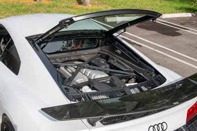 The CARFAX report notes rear-end damage to this Audi R8 in March 2024. Per the owner, the minor accident resulted in damage to the rear bumper and a scratch on the hood. Due to the aftermarket components on the car and the replacement of an impact sensor module, the total repair cost was nearly $85,000 per the invoice in the gallery. Repair work was carried out by Excel Auto Sport & Service of Boca Raton, Florida.
