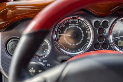 - Red leather door panels, dashboard, headliner, and seats with Morgan headrest embroidery