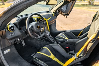 - Yellow-finished 6-piston front and 4-piston rear forged aluminum brake calipers with McLaren branding