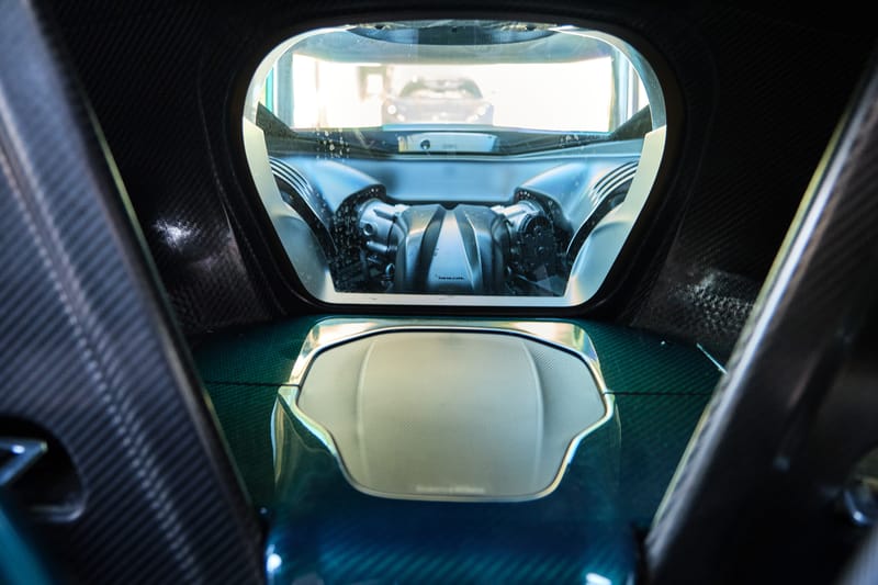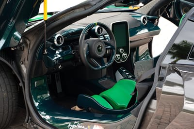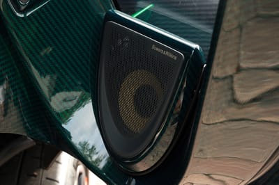 Additional equipment includes front and rear parking sensors, a backup camera, Gorilla Glass door panels, a glass upper rear bulkhead, an MSO push-to-drink system, and a premium Bowers & Wilkins seven-speaker audio system. The car also boasts a Formula 1-inspired roof scoop, front and side air intakes, rear air louvers, and a double-element rear diffuser.