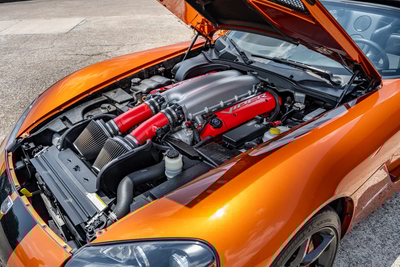 The “ZB II” chassis Viper was produced beginning in 2008, and model year 2010 marked the end of the era for the second generation. This 2010 in Toxic Orange is a stand-out car in an aptly-named hue. After all, it is likely to leave its driver feeling a bit intoxicated – if not giddy – after a blast to the 8.4-liter V10’s 6,100-rpm redline and a slice through the TREMEC six-speed manual gearbox.