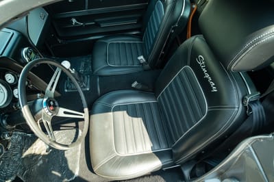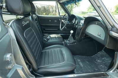 - Black vinyl bucket seats with white stitching, piping, and Stingray embroidery