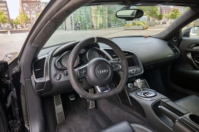 Per the seller, who is the third owner, this Audi R8 has been fully serviced at Audi dealerships and received a dry-ice cleaning of carbon buildup in the valves during importation from Germany to the Netherlands in 2023. Documentation is included.