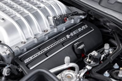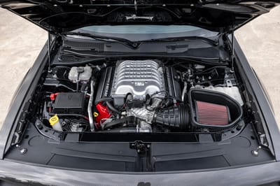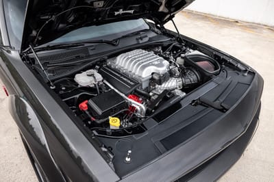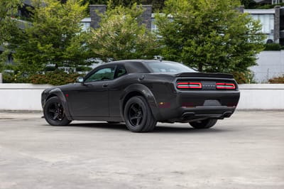 And then there is the engine. Running up to 14.5 psi of boost from the 2.7L supercharger and featuring beefed-up internals, dual-stage fuel pumps, and a revised cooling system, this particular Demon makes more than 1,000 horsepower and pound-feet of torque from its 6.2L HEMI V8.