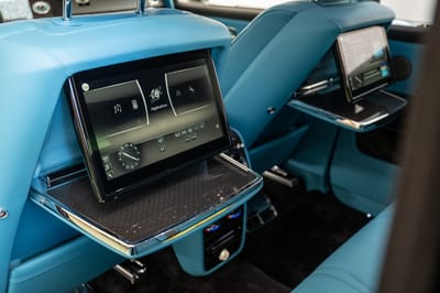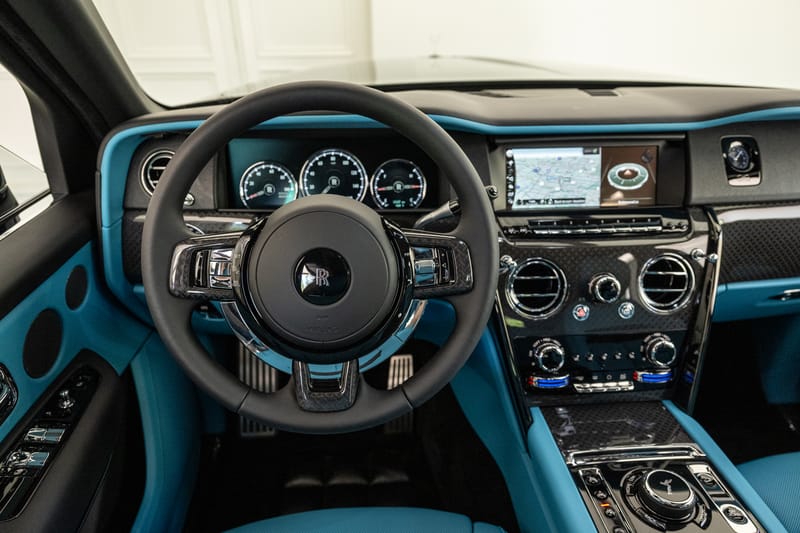 This as-new Cullinan was highly customized through the Bespoke program and comes with a striking color combination: The eye-catching Turchese upholstery lends a liveliness to the cabin, and the long list of options means that every passenger is going to be pampered. Theater-style rear seats put dual 12-inch touchscreens at passengers’ fingertips, and the 16-speaker audio system ensures that every sound is crystal clear. Occupants might not even realize there’s a thunderous V12 powering this machine.