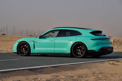 SBX Cars is proud to offer for sale this 2023 Porsche Taycan GTS Sport Turismo showing just 58 km (36 mi) on the odometer at the time of cataloging. Finished in Mint Green over a Black and Chalk leather interior, this sleek electric rocket is a head turner.