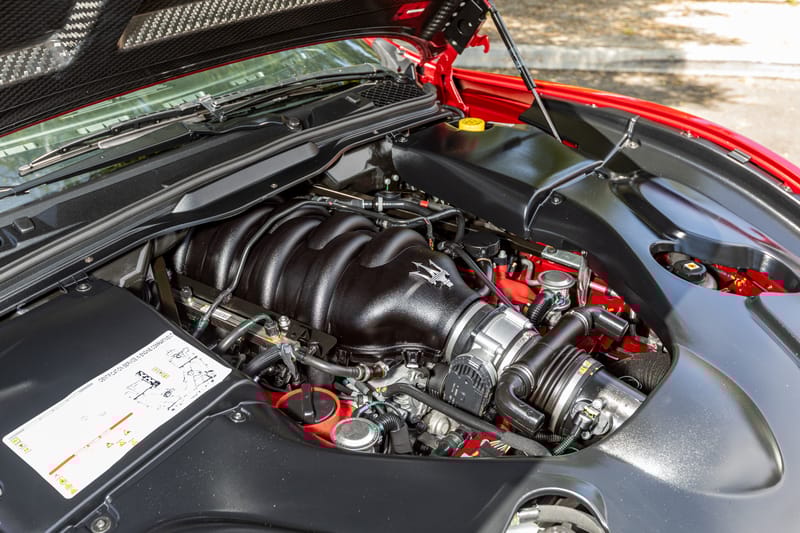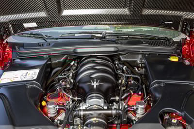 The year 1957 was of particular significance because it marked the introduction of the 3500GT, Maserati’s first real foray into large-scale road car production. That was also the year Juan Manuel Fangio drove the Maserati brand to a championship in Formula 1 at the Nürburgring. In recognition of that historic feat, some 60 years after the race, Maserati serialized 400 units of the GranTurismo as Special Editions and gave each of them special equipment like carbon fiber trim, 20-inch MC Design wheels, and commemorative placards.