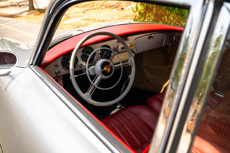This smooth, streamlined 1957 356A bearing chassis number 100555 is one of the rare surviving originals from those early days and went through restoration under prior ownership. The car retains its identification plates in the driver door jamb, including the stamped VIN plate from Reutter Karosserie in Germany. A comprehensive overhaul was carried out at Parkhaus1 Performance LLC in Miami in 2024, including work to the fuel system, electrical system, gaskets, ignition, and more. In addition, it comes with a Porsche Certificate of Authenticity.